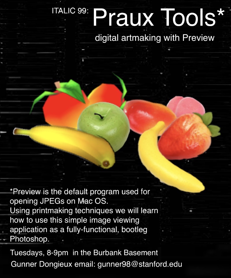 Gunner organized and curated a “1-night-only exhibition welcoming new and returning students to Stanford’s visual arts scene”. He will be following up this project by curating another open call exhibition next quarter. He hopes to encourages all artists to submit their works, and he hopes that the entire Stanford community will come see the show.