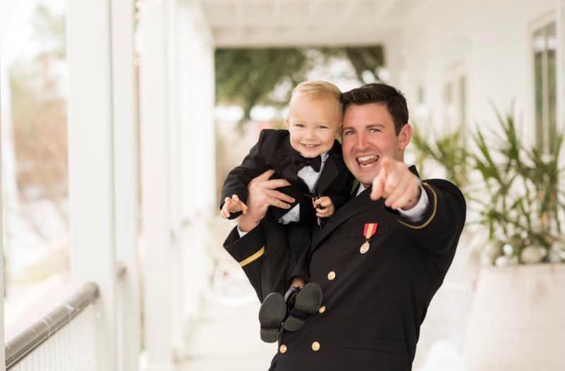 Craig, Parker’s Dad salutes Parker who is now an officer in the Navy