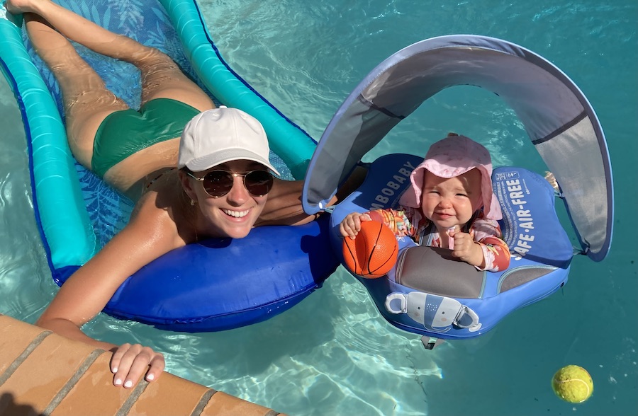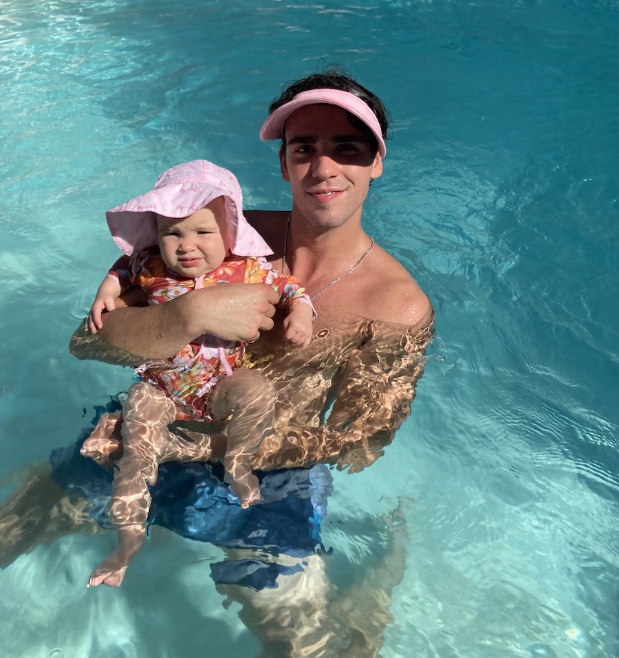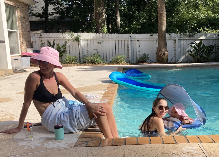 Summer family fun with Max, Shep, Bailey, Christian, Clair, Katy, Kosta, and (in the pool )Lorelei