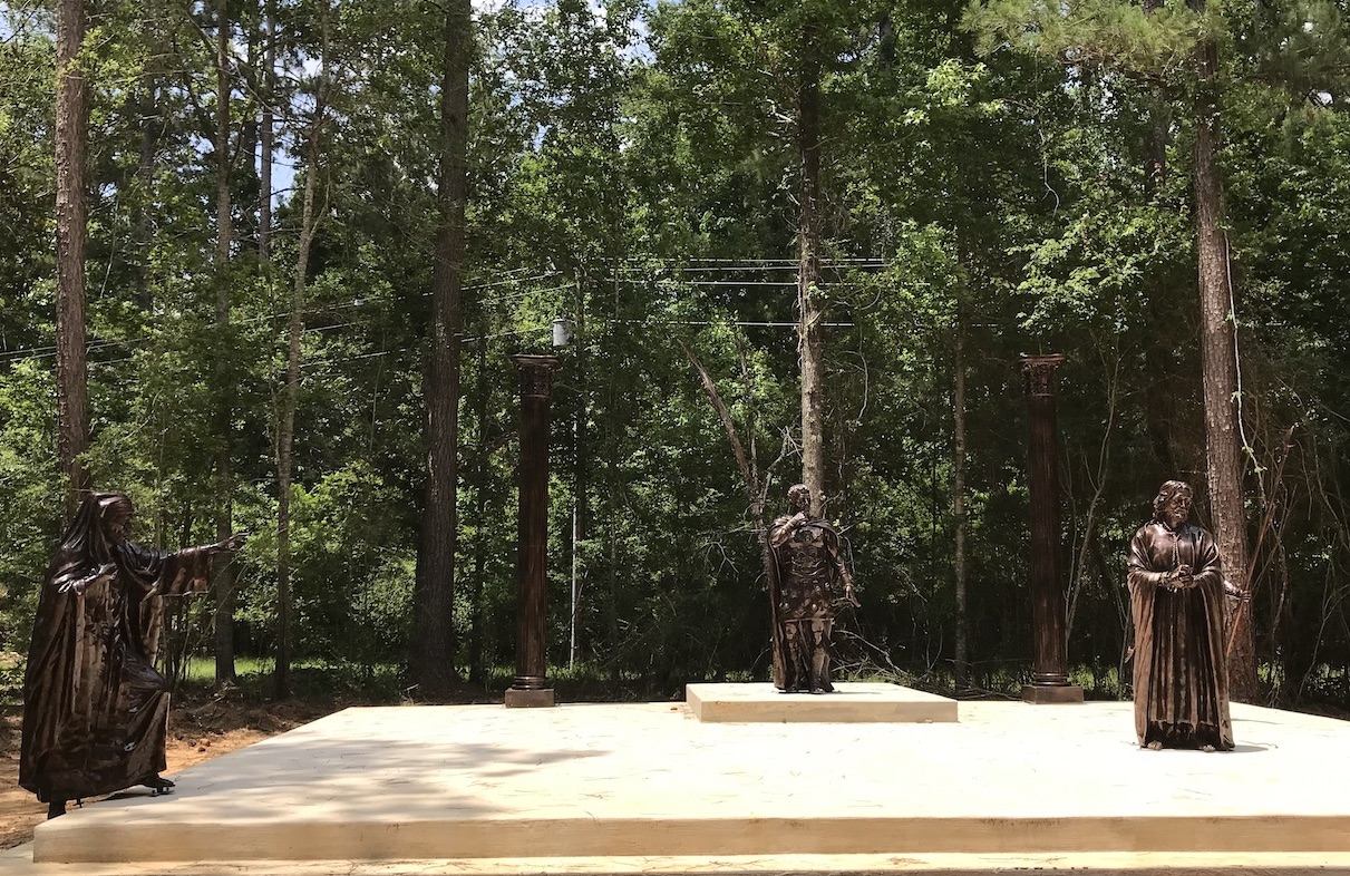 The grounds have wonderful with art that is still being created. the first set of statues when complete will be the twelve Apostles. The second photograph is the (1st Station of the Cross) Christ is condemned to death. The third photograph is the 12th station, when finished it will depict Christ crucified along side the two thieves.