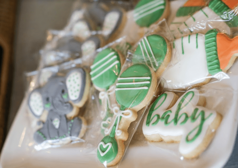 This is a little look at some to the goodies we enjoyed and the very clever diaper roll cake that Katy made for Bailey. Appetizers were made by “Plant Based Lifestyle-Holistic Passion” in Covington, LA. Cookies were designed and baked by “Sweet Batches” in New Orleans. Other desserts (not featured in photos) were made by “Bella Linda” in Mandeville, LA. Of course Tommy Crosby unfortunately doesn’t have a catering company however he treated everyone to Sushi and hot Fish Beignets which flew off the table as fast as he replenished the empty platters. Champagne and Wine were furnished by Max’s parents wine company Brix Wine and Liquor in Malta, New York which flowed endlessly and “all” had a grand time!